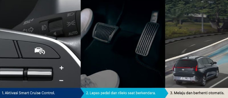 Mengatur kecepatan kendaraan tanpa harus menginjak pedal gas yang secara otomatis dapat menyesuaikan jarak kendaraan di depannya. Apabila kendaraan di depan berhenti, SCC akan secara otomatis mengurangi kecepatan sampai berhenti, dan akan kembali melaju mengikuti kendaraan di depan. Fitur sempurna untuk hadapi macet di jalanan Indonesia.