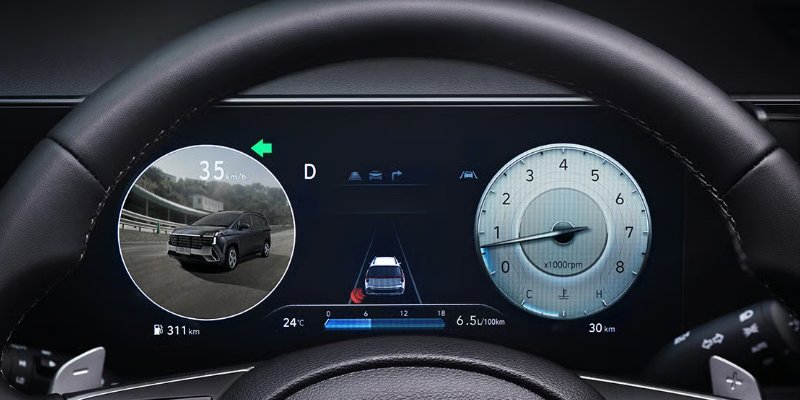 Menampilkan titik buta pada layar cluster saat lampu sein dinyalakan untuk memudahkan pengemudi dalam berpindah jalur.